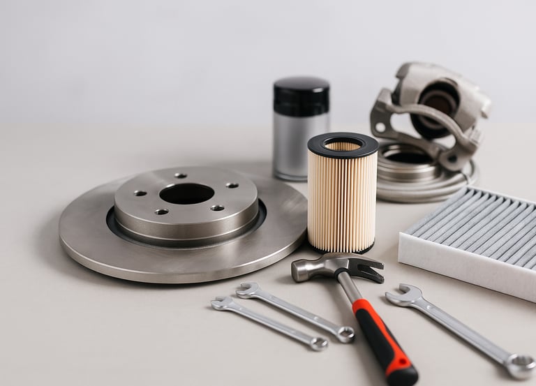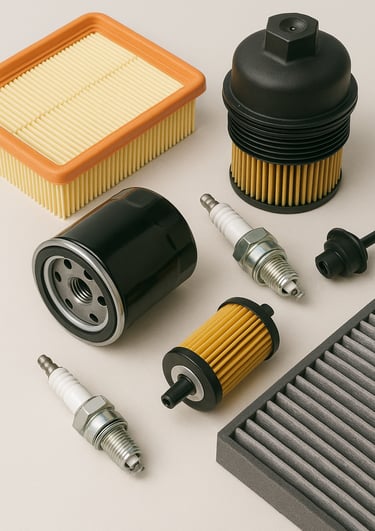 Filter oli, filter udara, dan komponen perawatan mesin untuk menjaga performa mobil tetap optimal.